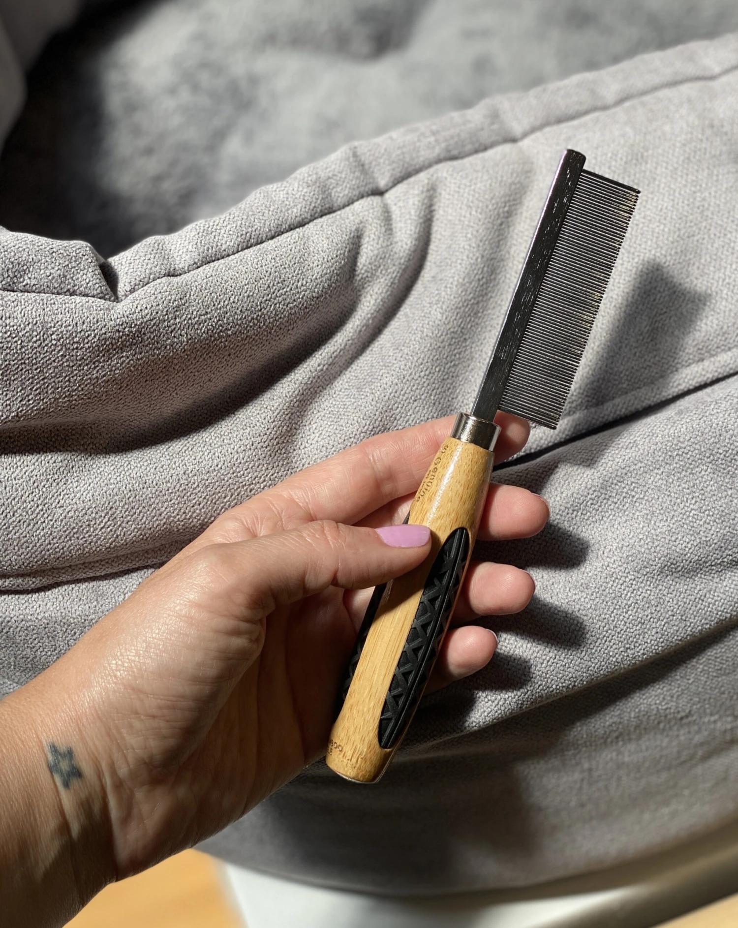 This fine-tooth metal comb is perfect for detangling knots in your dog or cat’s longer hair, or for shedding loose fur. Also great for getting those stubborn crunchies about of facial hair (hello, puppy beards!)