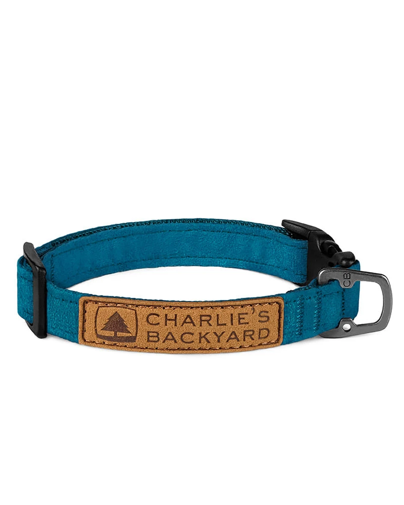 CHARLIE’s BACKYARD Easy Collar is an everyday dog collar. The Easy Collar is a simple and durable collar made by combining the soft feel of suede fabric with the strong strength of nylon fabric. Easy as 1-2-3!