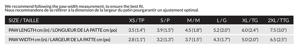 Note: Just like us, every dog’s paws are shaped differently, and some styles may fit some dogs better than others. We’re always happy to walk you through the different boot options that we carry to help you find the right fit for your pup. Once you’ve ordered, we recommend having your dog try their new boots on inside the house first, on carpet or rugs before giving them a spin outside. All returns or exchanges must be unused, and any items worn outside cannot be accepted.