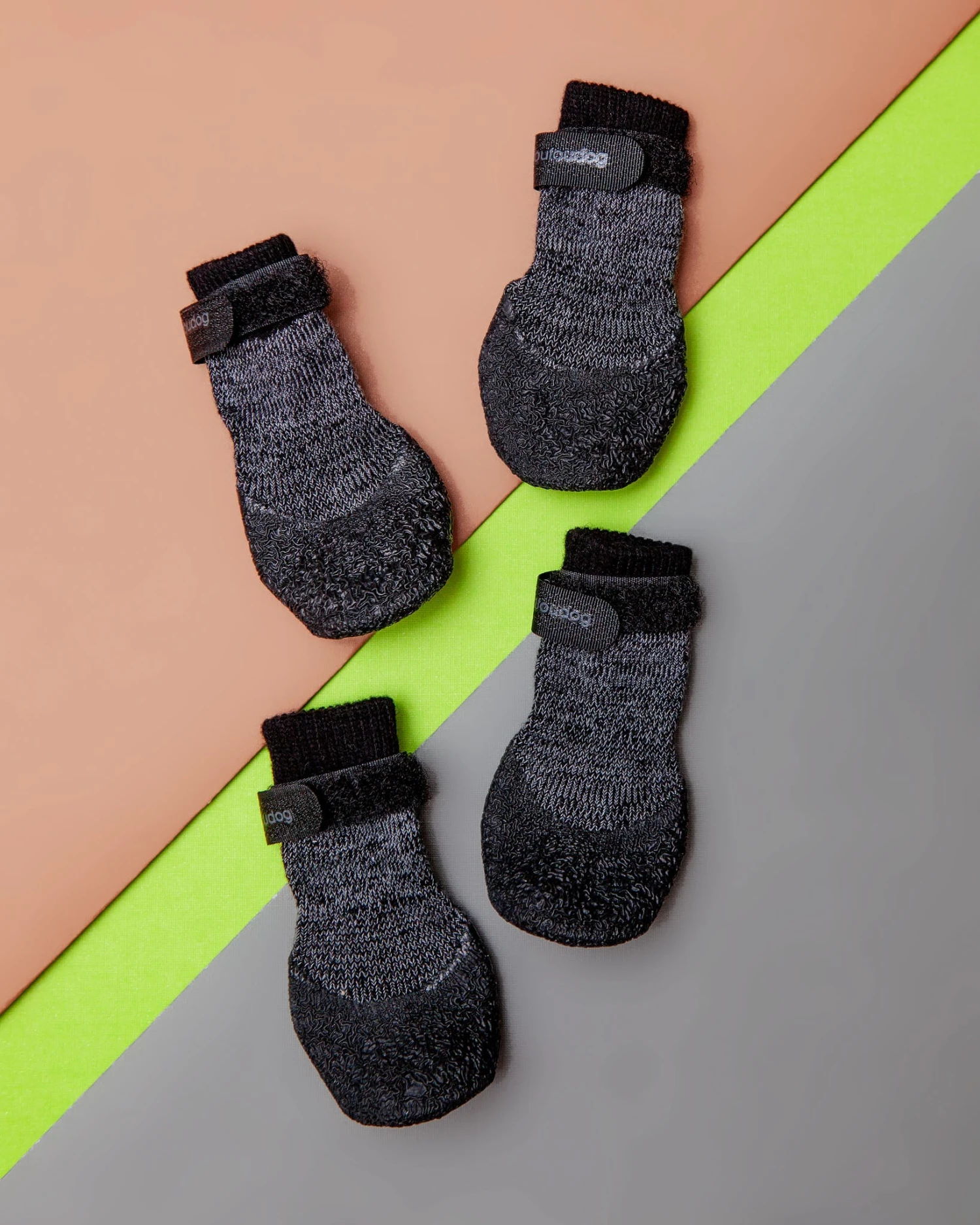 FOU FOU BRANDS Rubber Dipped Socks now feature a thicker, fully textured, rubber dipped sole. Adding extra protection to these already amazing socks, they are extremely easy to put on. They are the perfect solution to keep paws dry, clean and warm! The velcro strap ensures the sock stays on even during the longest walks. Detach the velcro strap for use around the house! The innovative Rubber Dipped Socks protects paws from outdoor elements such as water, snow, dirt, salt and hot pavement. Fully machine washable and reusable.