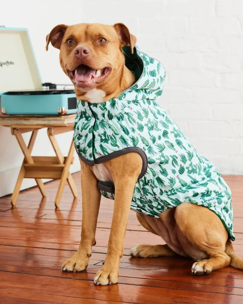 A cute raincoat that’s 1) easy to put on and 2) fits both tiny tiny and VERY large dogs and 3) Reversible? Yup, we found it!