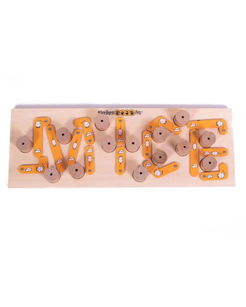 As the name says it all, this game was designed for cats. It has a difficulty level of 3 paws. The treats are hidden under movable orange pieces that form a word MICE.ย