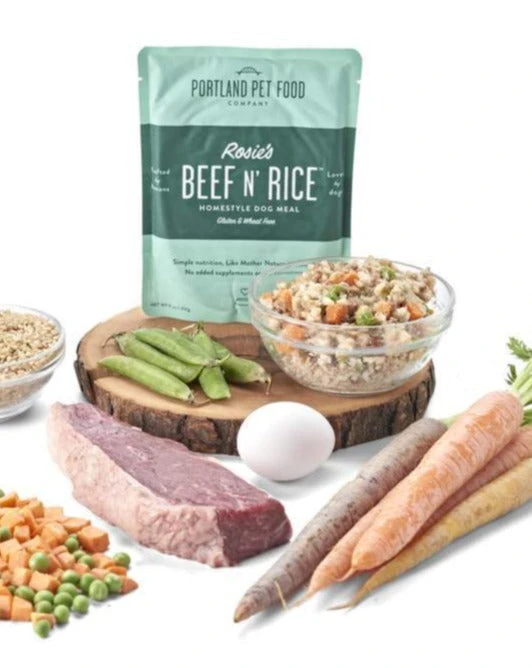 100% of the ingredients in PORTLAND PET FOOD COMPANY’s Beef N’ Rice dog meal recipe are approved for human consumption. Their beef is USDA certified and is sourced from Cascade Natural Meats in the Northwest.