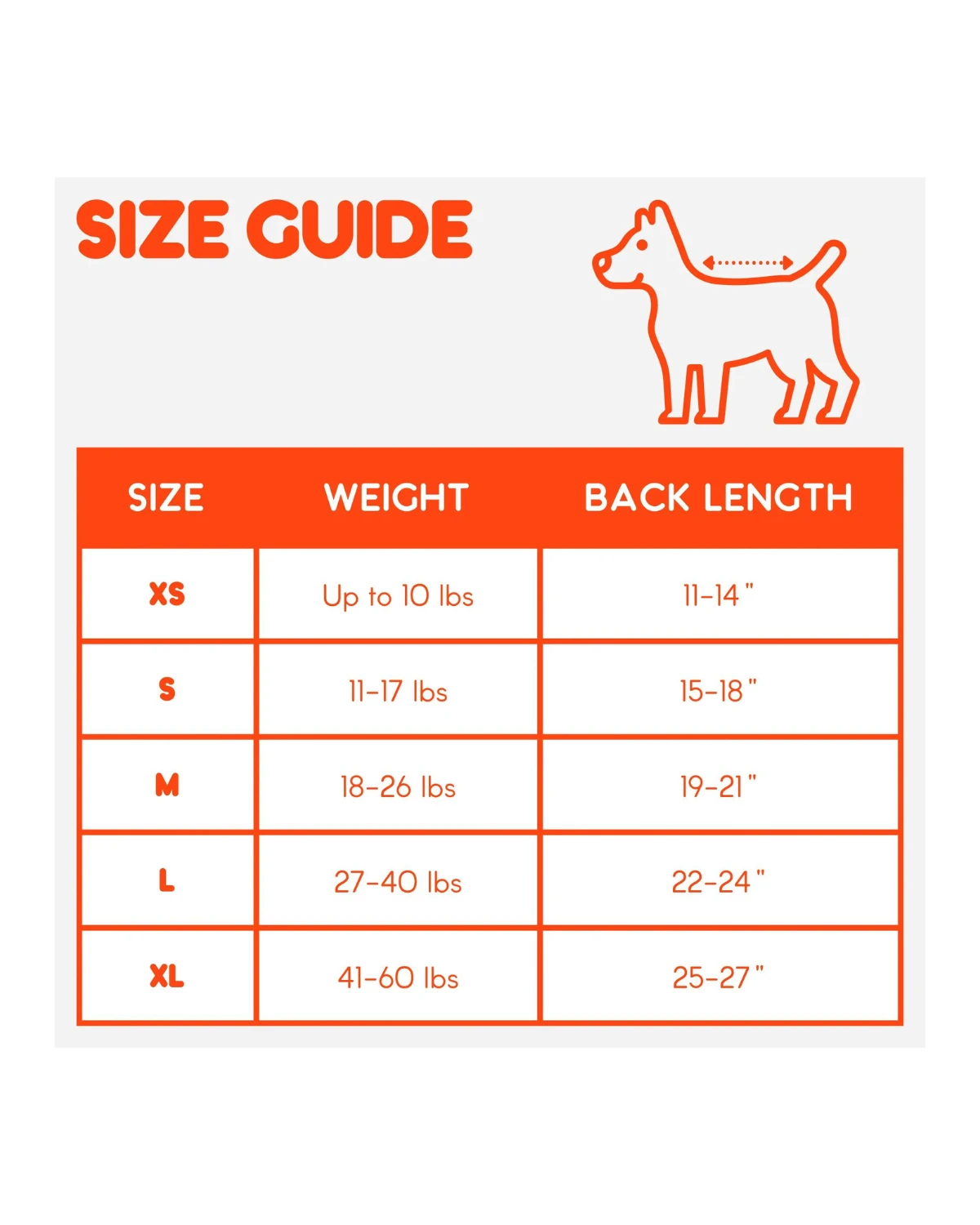 X-Large : 41-60 lbsย |ย Back length 25-27″